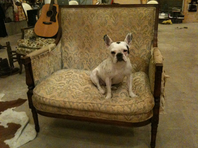 I designed this chair and it has become the perminant nap spot for my dogs Oliver (left) and little 9 month old rescue Chihuahua Henry (right). Dogs know furniture! There is never room for me on this piece. After 8 months, Oliver, now age 14, is finally allowing Henry to share it with him. Henry is now a very proud little dog with the best seat in the house!