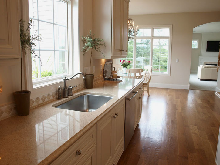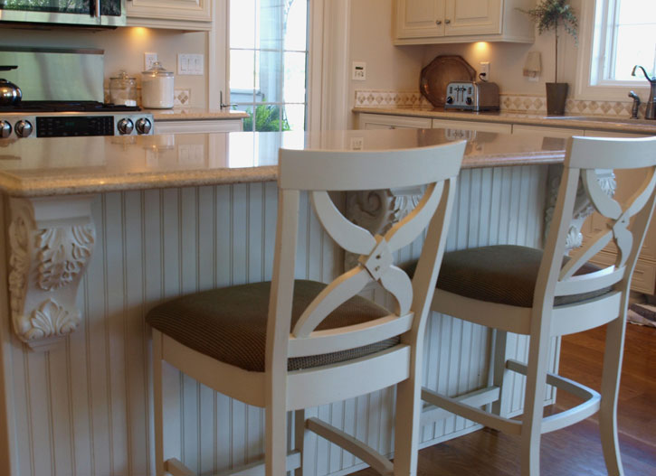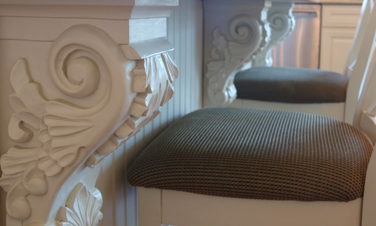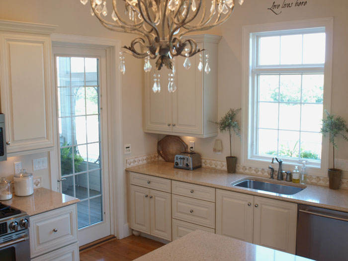 Nice kitchen for a model home but not practical! This is not an easy to clean kitchen. So much of the elements are dust collectors, e.g. the tops of the upper cabinets, the chandelier, the raised panels, the corbels, the open shelves, etc.