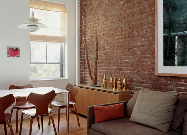 Exposed brick walls look great, adding art to the wall works too. Thanks for posting these!