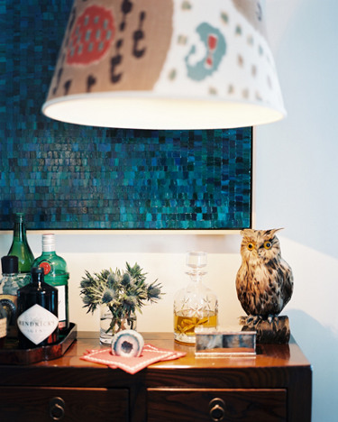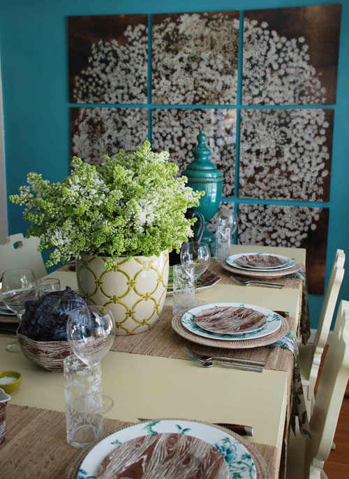 Someone is certainly not afraid of pattern! I really like the table setting and the mix of print and textures there.