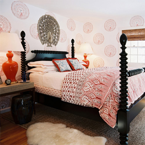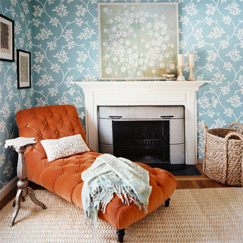 aeeee! that first matching lamp and chairs has hurt my delicate sensibilities. the rest of the photos are a curious mix of enthusiastic "yes's" and shuddering "no's". orange chaise falls in the former category, while the two brown wallpapers are firmly placed in the latter. overall, i am firmly ambivalent.