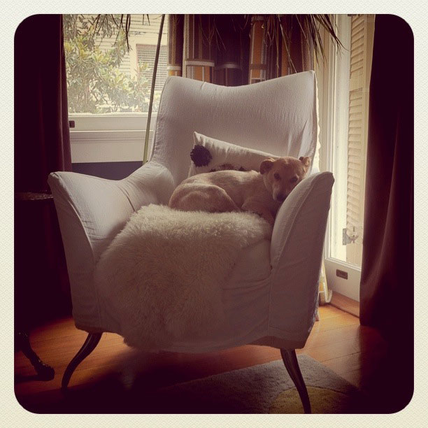 If you’d like to send us photos to include in next week’s “pets on furniture” post, please ensure your photos follow our basic rules: First, the pet must be on a piece of furniture. And said piece of furniture must be clearly visible in the photo, so it takes center stage rather than your pet. Think of it more of a photo of a great piece of furniture that you want to show off…and your pet happens to be sitting on it. And second, the photo must be of decent quality. If it’s dark or fuzzy (from a camera phone) then it may not make the cut. Thanks! (Photos, your name, location and a brief description can be sent to desiretoinspirekim[@]hotmail[.]com and PLEASE don’t send closeups of your pet!)