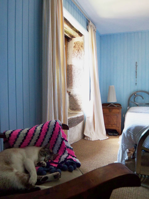 Back in May of last year I blogged the Spanish home of interior designer and artist Javier Requejo. To my delight he emailed the other day with photos of his holiday home in Ourense, 15 minutes outside Galacia, Spain (where his primary residence is). It has the same rustic charm as his other home but this one is filled with even more of Javier’s creativity and colour. And he even has some pets strategically placed in a couple of the following photos which always does it for me.