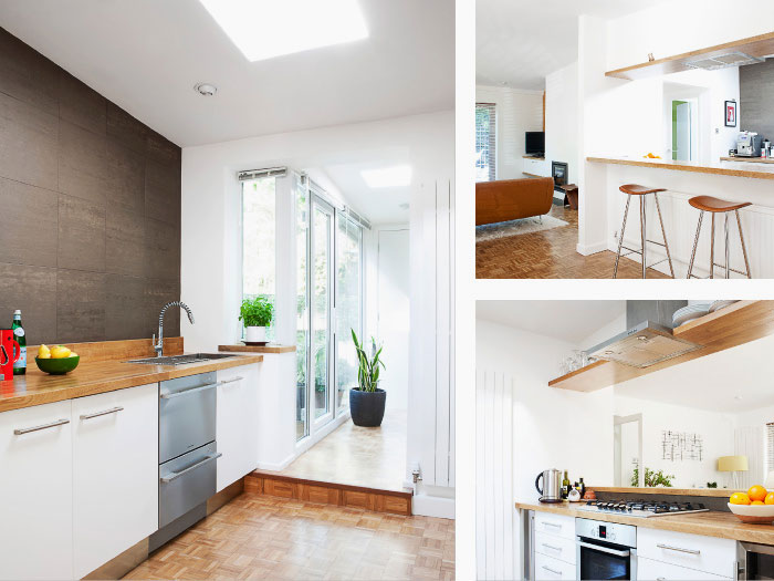 Here’s the first of 2 mid-century modern homes I will be sharing with you today. This one comes from David and Scott: We’re a small creative agency in Berkshire living in a Mid Century bungalow on the development where Truffaut filmed ‘Fahrenheit 451’ back in 1966 – in fact, our bungalow is of the same design as the one in the film. Though the actual property from the film has been sadly ‘renovated’ beyond recognition, we’ve rescued ours from dilapidation and given it a fresh, modern, modernist feel having remodelled it both inside and out ourselves. The bungalow has been a 4 year labour of love — we live and work in it (using Bedroom 4 as our Studio) — it’s a light-filled haven and we love it… but we’ve got itchy feet and would love to apply ourselves to another property and help it to shine as originally intended. We’ve created a microsite + a full booklet covering the history & provenance of the Development – ‘the estate of the future that time forgot’ – plus a full description of the property. The transformation is extraordinary. I freaking LOVE IT! It was so awful when they purchased it I had to include some before photos to show all their hard work.