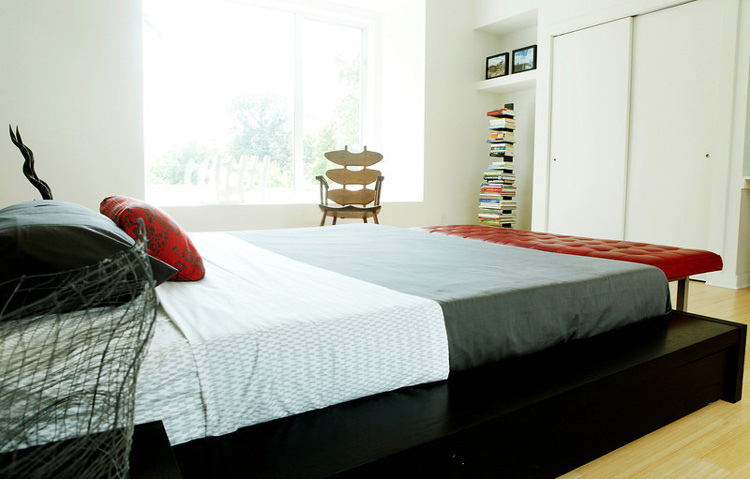 Maureen of The Inglenook Decor wanted to share with our readers some photos of a home that was featured in the Modern Home Tour in Austin. I love this house – the structure is incredible and the decor is (mostly) modern/mid-century of which I am forever a fan – and how cool that some walls are magnetic! (Photos by Andrew Chan)