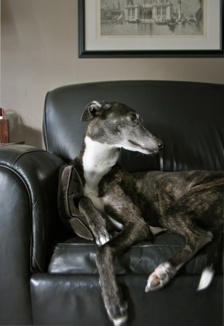 Here’s my retired Greyhound Bel taking it easy on her cane sofa. She’s taken total ownership of the sofa and spends hours contemplating… whatever…. here in the sculpture-studio sitting-room.