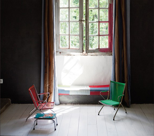 I found the following home on the website of French magazine Le Journal de la Maison last night and HAD to blog it. I adore homes like this one. Quirky, rustic, vintage, eclectic, colourful, mid century. Blend all those together and I’m completely smitten. I even love that fact that one window pane in the living room is partially painted pink. (Styled and photographed by Dana Van Leeuwen)