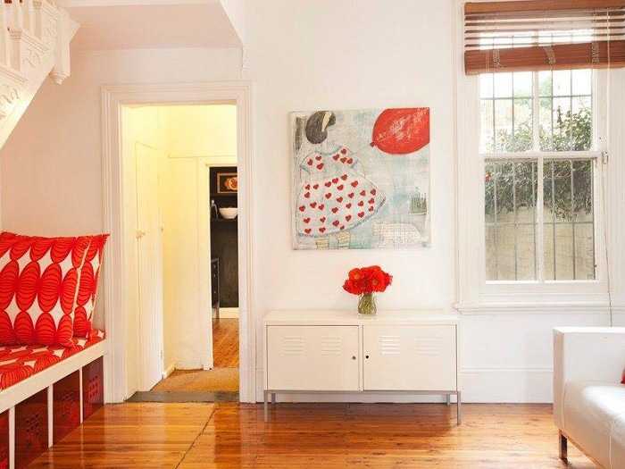 Such a sweet little nook using an often overlooked space. Found while real estate stalking.