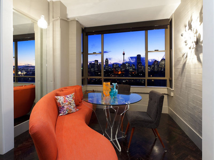 Two apartments. One Potts Point and the other Surry Hills, both Sydney. For a moment ignore the fact that the Potts Point apartment has a view that half of us would kill for. Let’s look at the similarities instead. Dark walls. Colourful “pops” (as in snap, crackle, pop not grandpa), eclectic mix of furniture, lashings of drama and oversized animals. Gigantic giraffe and dominating deer. Are they crackers to have such overwhelming animal decor? Or just fun loving decor fools? Not sure if I could live with such large taxidermied heads in such a bijou apartment but I do like those Surry Hills brown walls. Which one does it for you or would you be leaving the furniture and art out on the kerb for collection? Stalking inner city Sydney is always so much fun. Potts Point link here while it lasts and Surry Hills here.