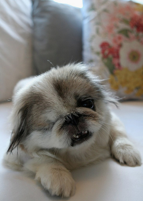 Here’s my little Char Siu Bao (loosely translated to Barbecue Pork Buns) who is a 10 yo pekingese. I recently fostered her but just couldn’t let her go. She has one eye, buck teeth but is super sweet.