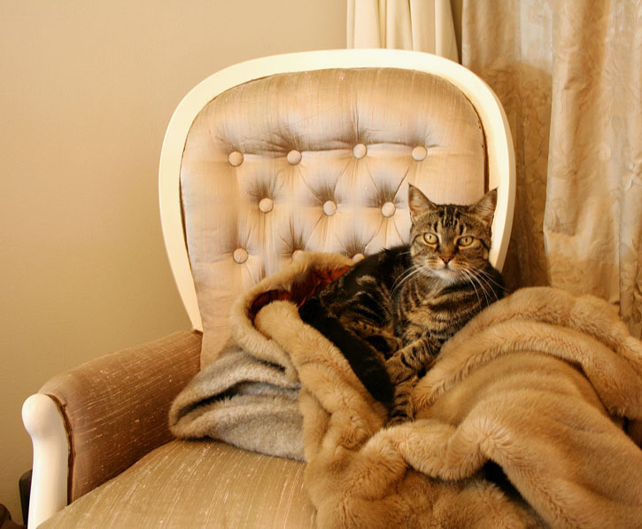 Thank you so much for posting our beloved Stripey Cat in your Monday Pets on Furniture feature. All her (now infamous) Monday contemporaries are so adorable and heart meltingly cute, they all seem to share a splendid air of regality!