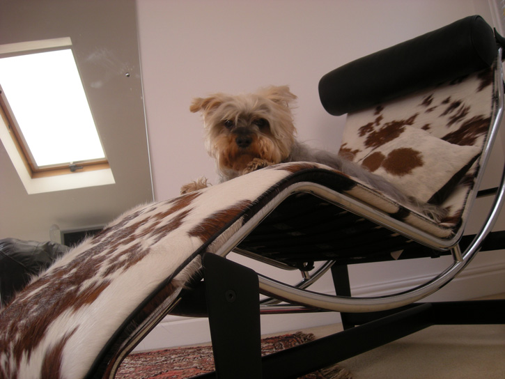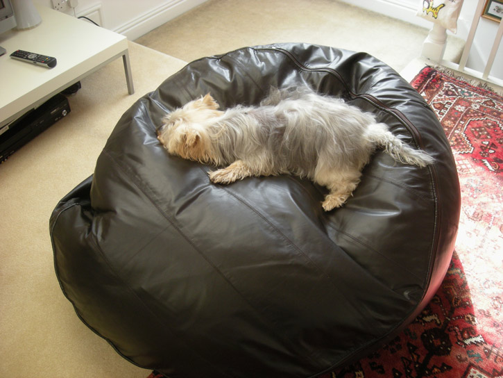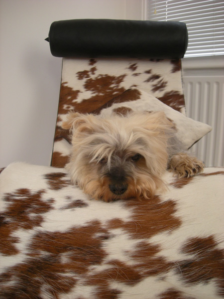 Here are a few pictures of Toby, our 16 ¾ year old Yorkshire Terrier – an old man now but still the light of our lives. Of course at his age he is allowed on all our furniture (although sadly can’t jump up any more) and can be seen here relaxing on our leather bean bag and resplendent on the cowhide lounger!