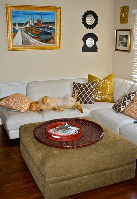 If you’d like to send us photos to include in next week’s “pets on furniture” post, please ensure your photos follow our basic rules: First, the pet must be on a piece of furniture. And said piece of furniture must be clearly visible in the photo, so it takes center stage rather than your pet. Think of it more of a photo of a great piece of furniture that you want to show off…and your pet happens to be sitting on it. And second, the photo must be of decent quality. If it’s dark or fuzzy (from a camera phone) then it may not make the cut. Thanks! (Photos, your name, location and a brief description can be sent to desiretoinspirekim[@]hotmail[.]com and PLEASE don’t send closeups of your pet!)