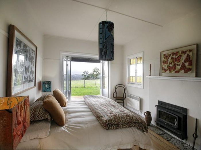 A house chock-a-block full of David Bromley paintings just down the road from David Bromley’s A Day on Earth shed in Daylesford, Victoria. A coincidence and a local with a deep pocket and great taste or perhaps the artist’s bolt hole? Don’t know but what I do know is that I love the relaxed vibe of this country house…. and the amazing art. Wish we could see more of the large open plan living/dining area in what I’m assuming is the dairy. Yes old country house and renovated dairy guest house. The bad real estate shots have whetted my appetite for more. I’ve been stalking again. Tomintoul c 1860. Link here while it lasts.