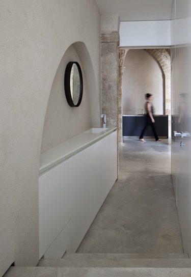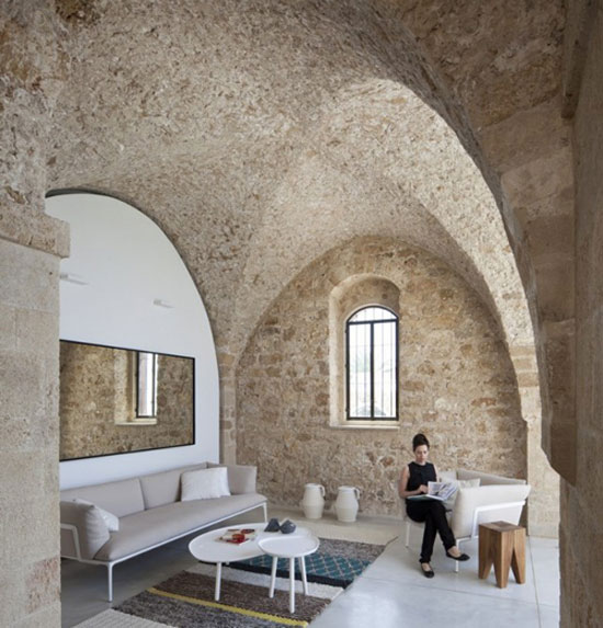 One minute I love modern…and the next minute I love rustic. Every now and then I come across a home that has both, but this home is pretty much the extreme of what is modern and rustic. It is located in Jaffa, Tel Aviv and from what Google translator told me, it is at least a century old and has been restored and modernized. I am taken with the juxtaposition of the stone arches with the polished concrete floors and sleek cabinetry and furnishings. (via Mimdap)