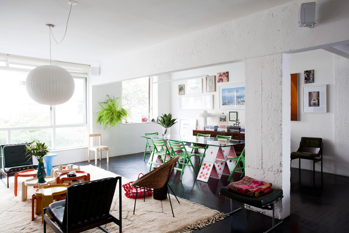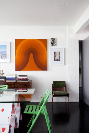 Hello beautiful Brazilian apartment. Hello hello hello. I found this quirky yet stylish, retro with a sense of humour home in the portfolio of photographer Fran Parente. It belongs to architect/designer Mauricio Arruda and you’ll find it in São Paulo. (What I love about Fran’s work is that he captures the bold personality of this place perfectly but still keeps it real. Great light, great colour, cool insight into a fab flat. The house of cards dining table better not come tumbling down though. OOOH bad pun. It’s the Mesa Baralho in case you just have to have one.) But then I found Mauricio’s website with even more great designs. So now you’ll have to visit both!