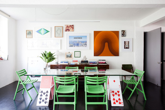 So many fun elements here- like the dining table base and the grouping of tables in the living area. The colors make it even more fun.