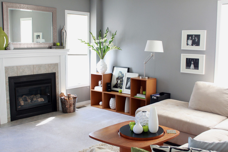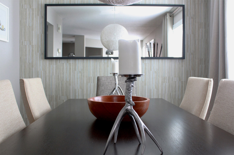 I received an email the other day from fellow Ottawa resident Sacha that I was pretty excited about – another Ottawa reader’s home tour! Sacha and his wife Melissa are a young newlywed couple who, thanks to cash gifts from their wedding, were able to work some magic on their new home (which they received the keys for the day after their wedding – talk about too much excitement in 2 days!). Having lived in a 1 bedroom apartment beforehand, this must have been a bit of a daunting task on a bit of a tight budget, however, Sacha and Melissa did such an awesome job! I love the neutral colour scheme, the funky wallpapers, the modern furnishings and the wall colours (they painted every wall! and grey is my fav!). I am shocked they did not follow a common Ottawa trend of zipping out to Ikea or Leons and buying every single piece of furniture in one trip (UGH). They have launched a new blog and interior decorating business and I foresee much success for this talented couple.