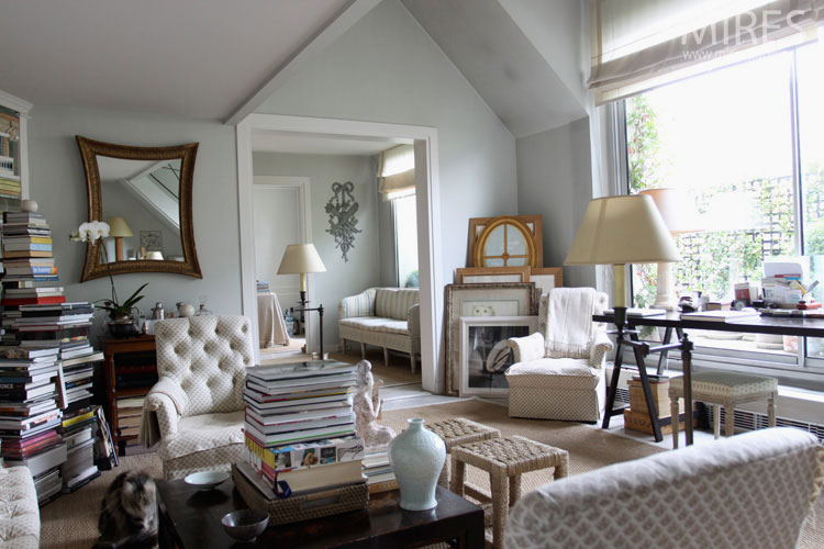 This is the first of 2 posts I have for you today. There is such a huge difference in the mood of a space depending on the colour scheme used…whether it be light or dark. This space is all about white and beige. Classic and French-inspired. The perfect space for a bookworm (although it could use some work – some of the furnishings are just plain icky).