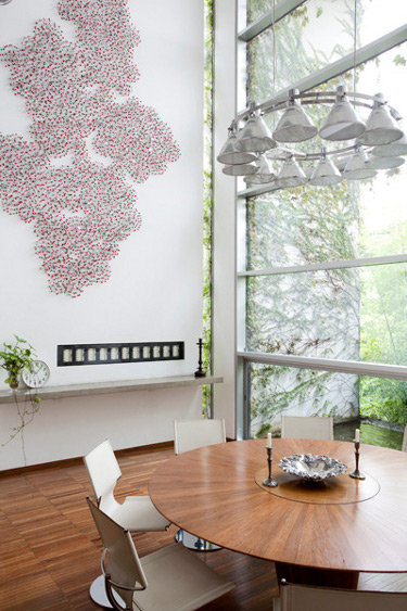 Architect and furniture designer Pedro Useche has created this open plan home, his own, settled in a lush tropical garden in São Paulo, Brazil. The Venezuelan designer surrounds himself with his own furniture pieces as well as mid century classics but what I love most is the riot of art that brings life, an extrovert personality to the large white spaces that are a perfect counterfoil to the vibrant green surrounds. A home full of discoveries for the eye. I can imagine walking in and racing from spot to spot exploring all the treasures of a creative mind. The wonderful photography is by Fran Parente.