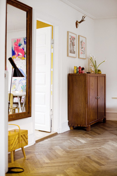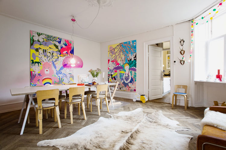 I saw this house tour on Dos Family recently and fell in love. It is in fact 2 tours – the studio and the home of artist and fashion illustrator Lisa Grue. The workspace is so open and bright and would be an amazing place to bring out one’s creativity. Lisa’s home is equally bright and colourful and would be the perfect place to raise a family. The studio is up first, and her home is after the jump. (Photos by Jenny Brandt).