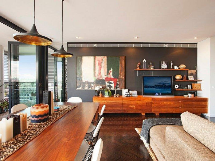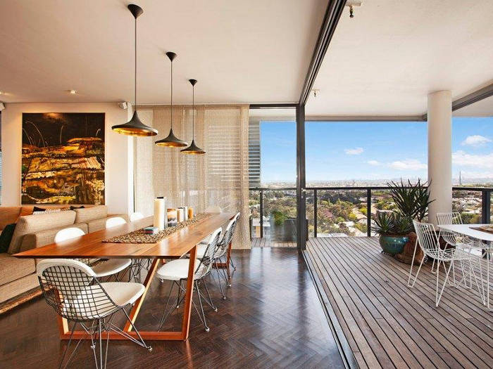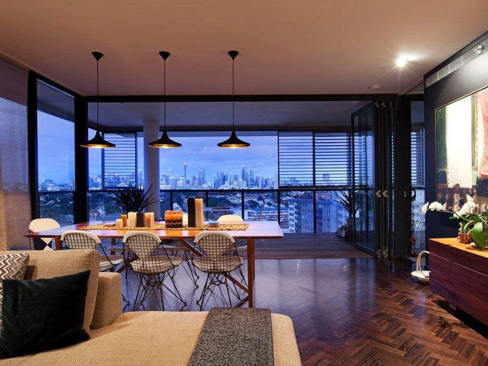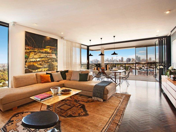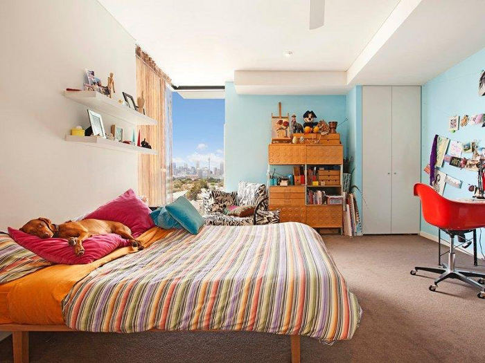 What a aview! What an apartment! I”m real estate stalking in Camperdown on the Sydney city fringe. It would be tempting to let the view do all the talking but this apartment can more than hold its own against an impressive backdrop. Not brash and bright coming ready for the fight but stylish and comfortable, an easy modern elegance. Almost as comfy as that pillow seems to be for the four legged member of the family. Link here while it lasts. (A big thank you to fellow real estate stalker Andrea for tip off emails!)