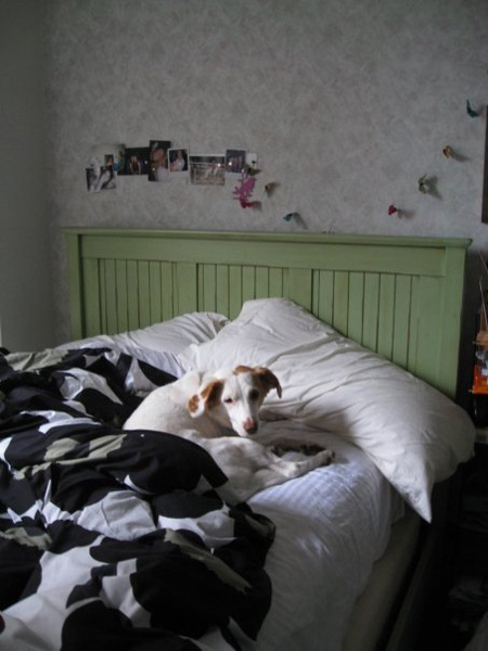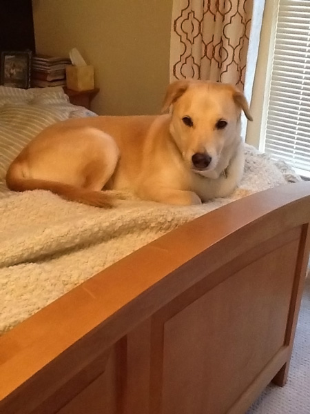 I get this email from my wife with the subject line…. Monster created. I figured it was one of our dogs, Molly or Ace doing something. Turns out that after 6 years, Ace thinks he has free reign over all the furniture in the house. In this case, it’s our bed. Indeed, a monster has been created!!!