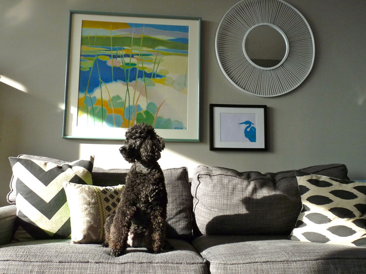 Loving the photo of Django – not the painting on the wall above the sofa – so sweet!