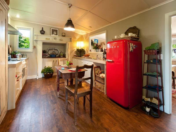House hunting sounds so much more “adult” than real estate stalking. Not that I’m looking to bag any houses this particular house hunting season. My bag limit was definitely one and I’m done. Still I seem to be drawn to country cottages and getaway boltholes. In places with fruit trees and hedges, a vege garden, old wooden sheds, quiet country lanes and a well stocked local deli with cheese room and wine cellar just down the road. Perhaps a cafe with a famous, now “retired” barista. Somewhere I can rough it with a cappuccino or some gelati. This cottage might just do me fine. It’s just outside Daylesford in Victoria. A little decluttering, a few more found industrial pieces and a wine fridge. Every weekender needs a wine fridge 😛 Link here while it lasts.