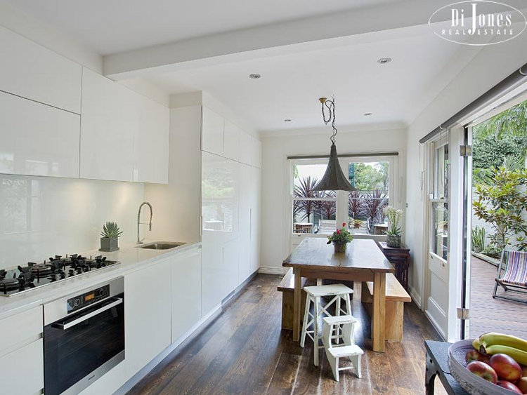 OH MY GOD that kitchen is beautiful. I've never seen cabinetry like that, pure white with nothing to make it just look like a wall. Really opens up that narrow and space with a giant table. Combined with the windows, it doesn't seem so claustrophobic.