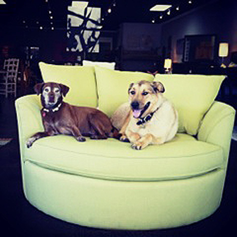 Attached is a picture of our family dogs, Chester (right) and Coco (left), who also happen to be the mascot of our family store- True North Living. Along with keeping me company, they greet the customers with a sniff and lick. Occasionally they like to model the furniture, or should i say, model ON our furniture. The nest chair is their favorite!
