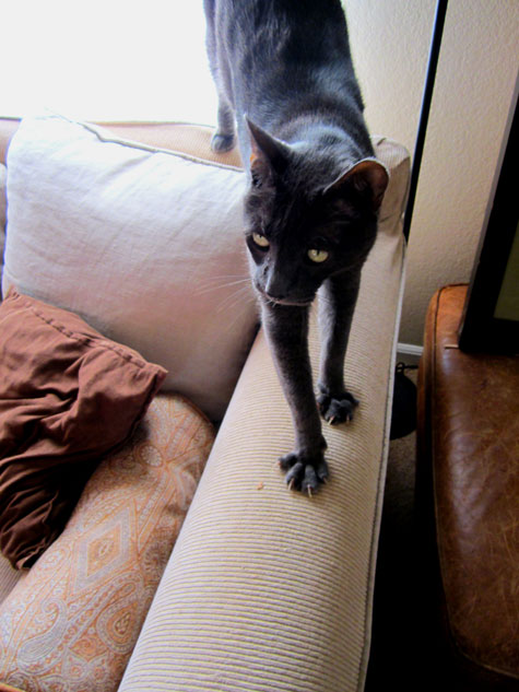 If you’d like to send us photos to include in next week’s “pets on furniture” post, please ensure your photos follow our basic rules: First, the pet must be on a piece of furniture. And said piece of furniture must be clearly visible in the photo, so it takes center stage rather than your pet. Think of it more of a photo of a great piece of furniture that you want to show off…and your pet happens to be sitting on it. And second, the photo must be of decent quality. If it’s dark or fuzzy (from a camera phone) then it may not make the cut. Thanks! (Photos, your name, location and a brief description can be sent to desiretoinspirekim[@]hotmail[.]comand PLEASE don’t send closeups of your pet!)