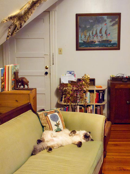 I wanted to send in this picture of my 1 1/2-year-old Ragdoll cat, Josephine, napping on my antique 1930s sofa.