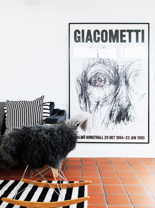 2 – Swedes know how to highlight rug above with a cool large-scale graphic piece of art
