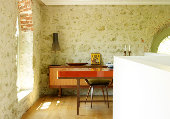 This is one of the loveliest church conversions I've ever seen. The style choices made by lots of church converters just don't work (imo) – they tend to either be too traditional and in thrall of the architecture, or go with a too harsh misplaced industrial shiny glass and steel warehouse loft vibe. This one is just right.