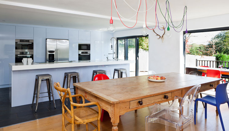 Wow, thanks for the kind words and for featuring my work again, It's great to be appreciated. The blue kitchen and sitting room with the Eames is the work of talented UK interior designer Carine Harrington from http://www.boutiquedevelopments.co.uk