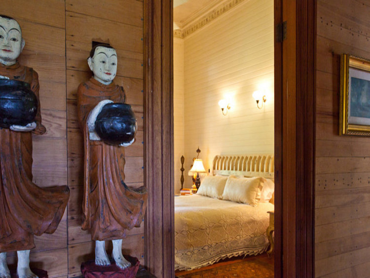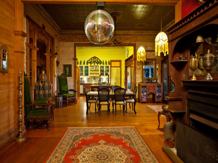 I want you all to come to my virtual New Year’s Eve party. I know it is late notice, my apologies, but I found the perfect venue while real estate stalking today and well one thing lead to another and I hatched this harebrained idea that if we all imagined hard enough and clicked our heels we could wish ourselves to this perfect party house. On a ridge in the hinterland behind Byron Bay in New South Wales lies an old Queenslander style house that is eccentric and magical, fun and historical, kooky and hands down the best house for an end of year bash. Look it even has disco balls ready to light up our night! Not quite to my taste (too many cherubs, Victorian velvet and lace bedspreads), I couldn’t live here but I could certainly party here! I am drawn in by its siren’s call. An entertainer’s paradise with age and character, loads of character, luxury and a little decay, a pool with a teepee, Moreton Bay fig trees to flirt under, verandahs to lounge on drink in hand and a rainforest stream for Sunday morning BBQ breakfast for those of us who haven’t indulged too much. For those of you who haven’t made it to bed yet there are vitamin B tablets and aspirin in the kitchen and heavy drapes in the bedrooms when you finally make it to sleep. We promise to keep the gramophone turned down low. Happy New Year!! (Link here while it lasts.)