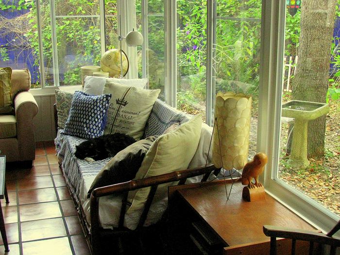 The pics below are of Farrah Boo in our little sun room. She is the fat lardy blob on the long couch.