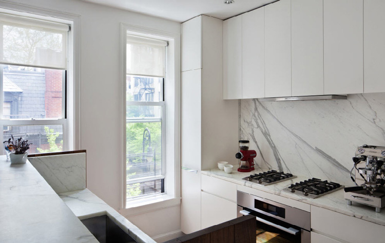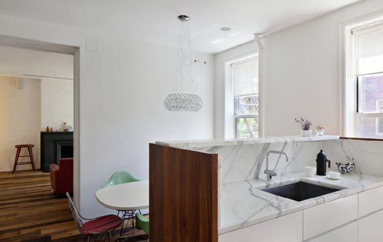 Everything is lovely, but I really love the thick wood block staircase with the metal balustrade. The first kitchen is also inspiring as I am thinking about using marble and walnut in my en suite bathroom. Thanks for sharing!