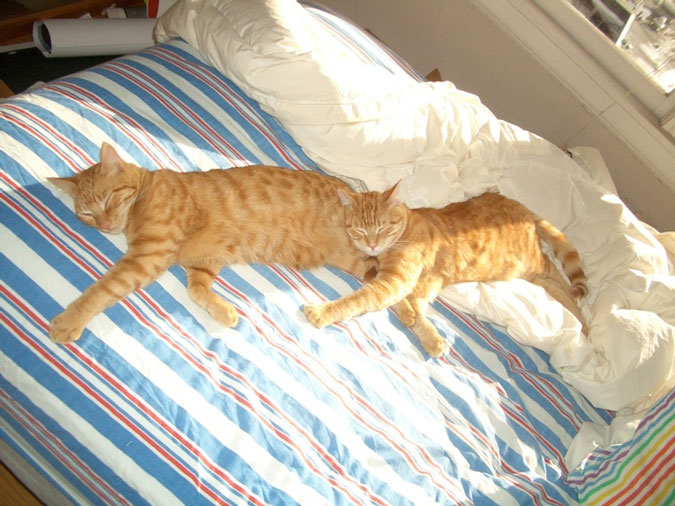 1 – Elliot (Wirp), Oliver (Pants), myself and their sister Madi all shared a tiny 1 bedroom apartment in the Magnolia neighborhood of Seattle, WA. They were all VERY busy with the goings on of the hens that lived across the street that would break out of their pen. Almost daily, I will find both (HUGE) boys snuggled next to each other on this, my favorite green chair, or atop one of the many pieces of luggage I’ve collected.