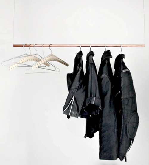 Or a simple clothing rack using copper piping and some cable (this one actually comes from Ivania @ Love Aesthetics)