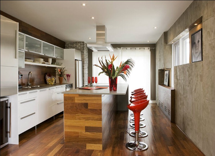 I stumbled upon Montreal-based firm Gauvreau Design recently while doing some googling. They seem to specialize more in commercial projects than residential but I had to share, particularly the kitchen in the first few photos. I think it’s brilliant how the stove and fridge are housed in their own built-in sections, and the lighting strip that runs into the hood fan.