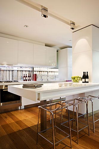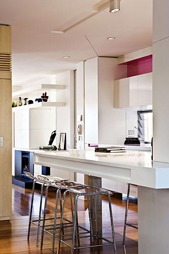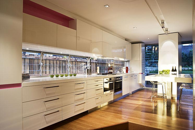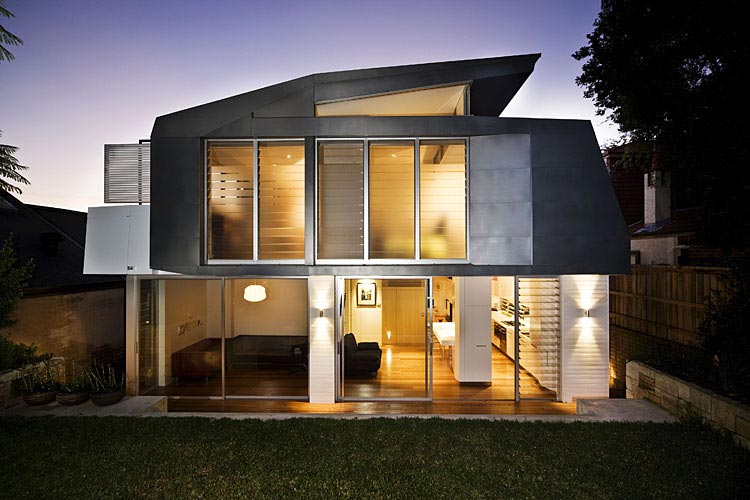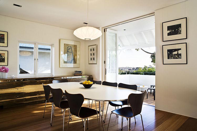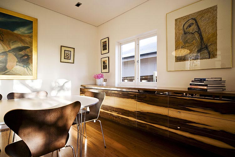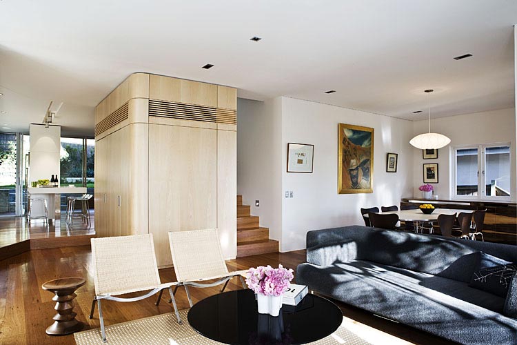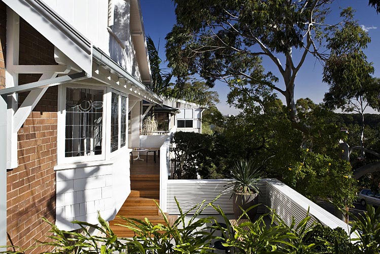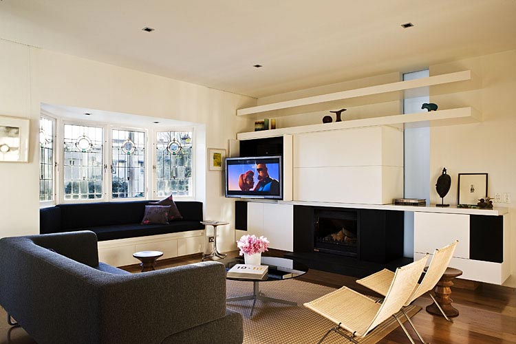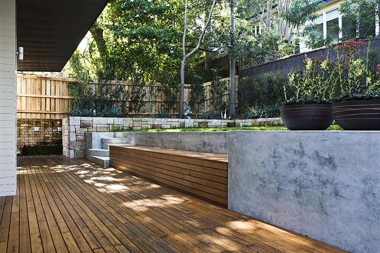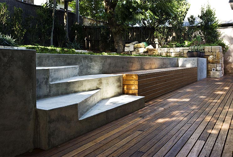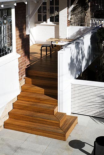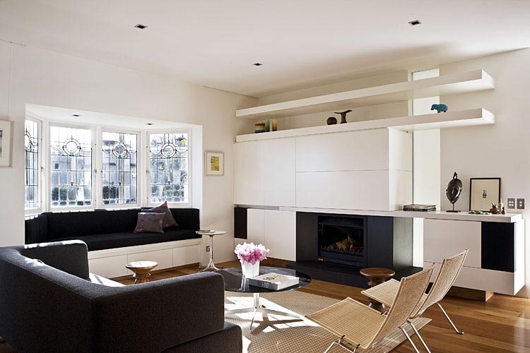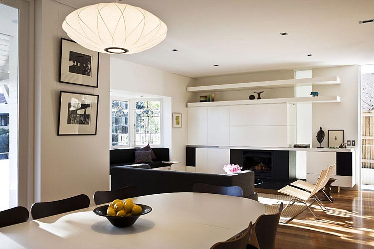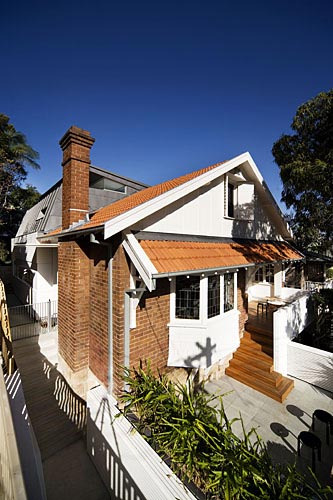 Clever custom joinery in this McMahon’s Point, Sydney renovation and extension by architects Stanic Harding. A California Bungalow style home was given a modern take while retaining period features like the bay windows. The new addition respects the street appeal while not hiding its existence or pretending to be what it is not. A change of level in the small backyard provides an opportunity for decking and seating that will soften over time.
