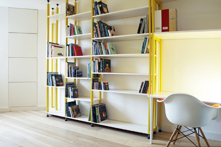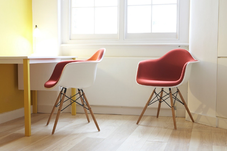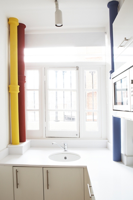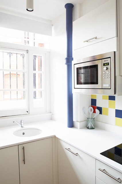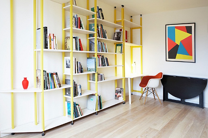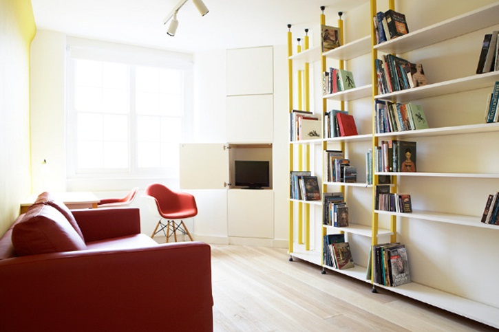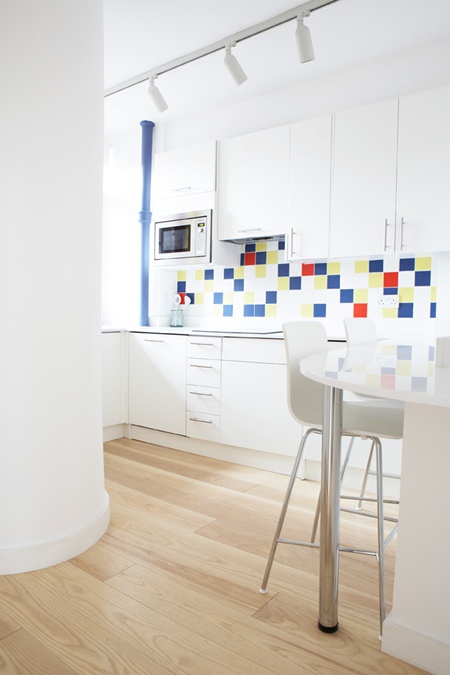 Check out this project we received from The Hub Design based in Shoreditch, London: Situated opposite Saint Pancras, the historical Queen Alexandra Mansions in Kings Cross is one of the most unique buildings of its kind. Each flat has its own layout, history and personality. In particular this property – a Bauhaus inspired project in which the Hub Design Limited designed, built, project managed and sourced everything for the property from the ground up. Our challenge was to create a minimal, stylish modern living space for art and design lovers, whilst providing storage solutions necessary in a small one bedroom property. Classic Eames furniture was used in conjunction with custom built shelving unit and a made-to-measure work space. I’m not usually a fan of primary colours but this is kind of fun! It’s nice to see designers who aren’t afraid of colour and go outside the box.