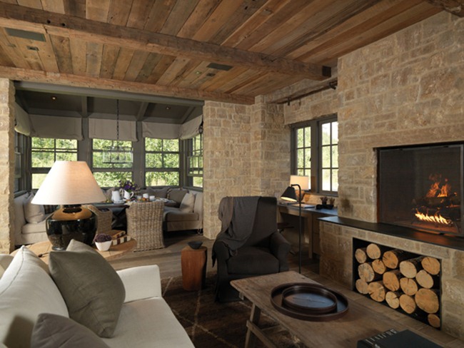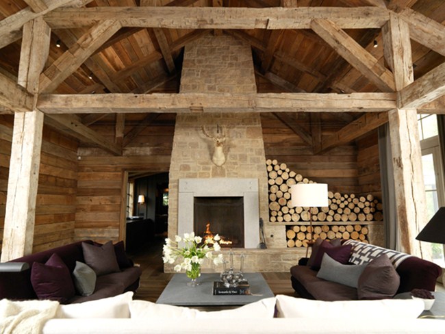 Wow! So many wonderful spaces. I especially love the second picture with the fireplace and stacked wood, this room is truly magnificent. Thank you for sharing!