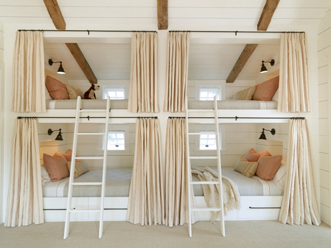 I really like that HUGE island. The kitchen is always the focal point of all parties and a large island helps facilitate that. I also really like the stacked bunkbeds too!