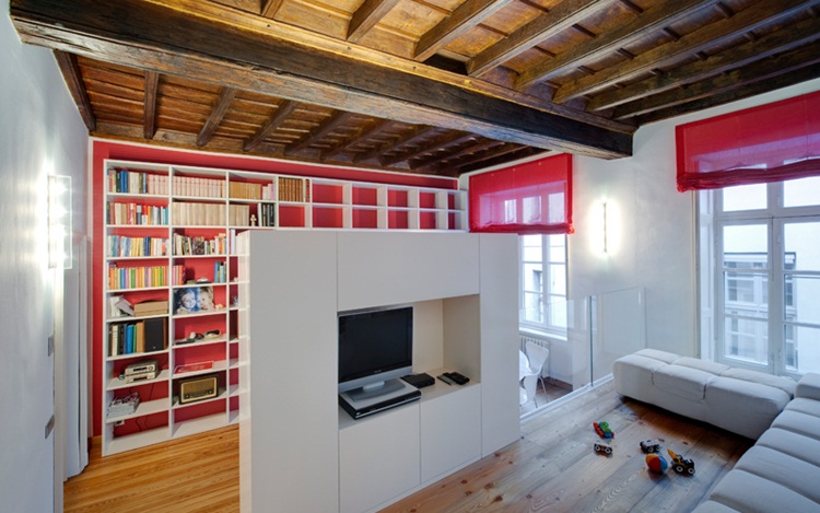 My brother-in-law sent me a great link from Treehugger (via Contemporist) to a brilliant way to hide a bed away when dealing with a small space. Point Architecture (based in Torino, Italy) hid a bed in a drawer-like space in the living room, creating sleeping quarters for the owners so their children could have the only bedroom in the apartment. This look so much easier to deal with than a Murphy bed.