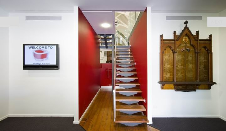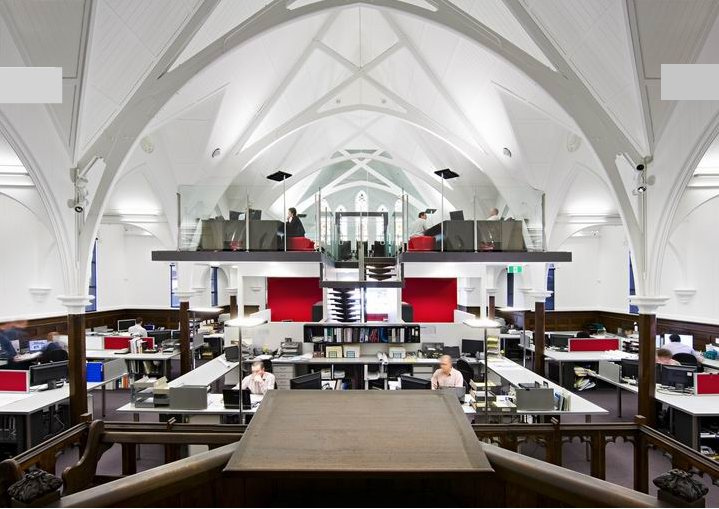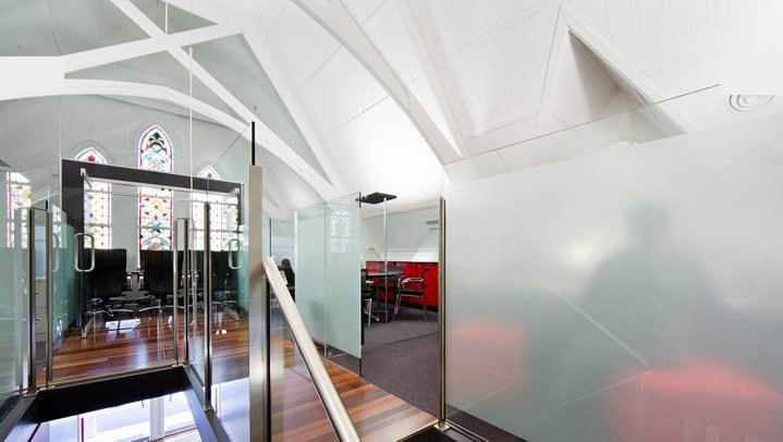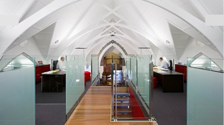 Another church conversion to add to our comprehensive “what to do with an old church or what not to do” list. This reuse of church space as office space can be found in Brisbane. ( I can’t believe I didn’t think of it earlier. I used to drive past it all the time.) Mowbraytown Presbyterian Church built in 1885 and redesigned (or is that adaptively re-used) by Base Architecture.