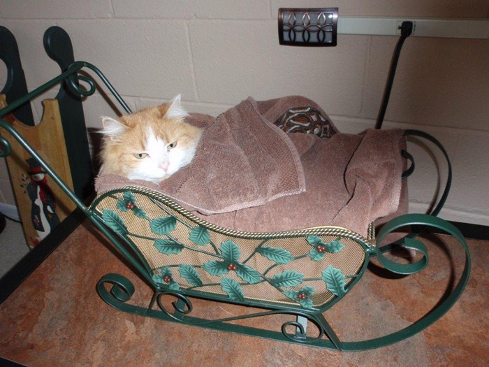 Here is a photo of Zoe—I put this sleigh out for the holidays but Zoe saw a “new bed” and I can’t put it away until she chooses another favorite spot to sleep.