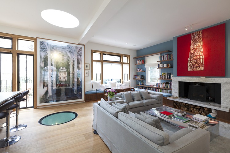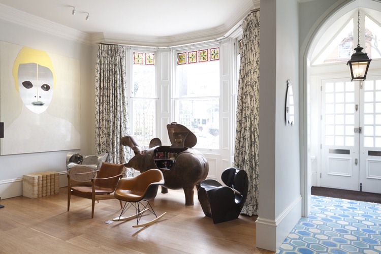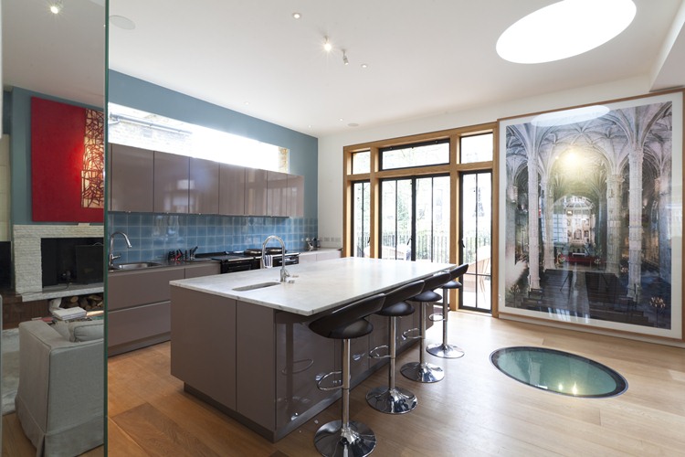 This is the last home for today from Domus Nova, and seems to be the least oddball of the bunch. Except it has a large hippo bar in the living room….and a quirky Ron Arad Paperdelle bronze chair (that’s like a chair and a runner in one!) near the front door….and a weird porthole thing in the floor with matching skylight….